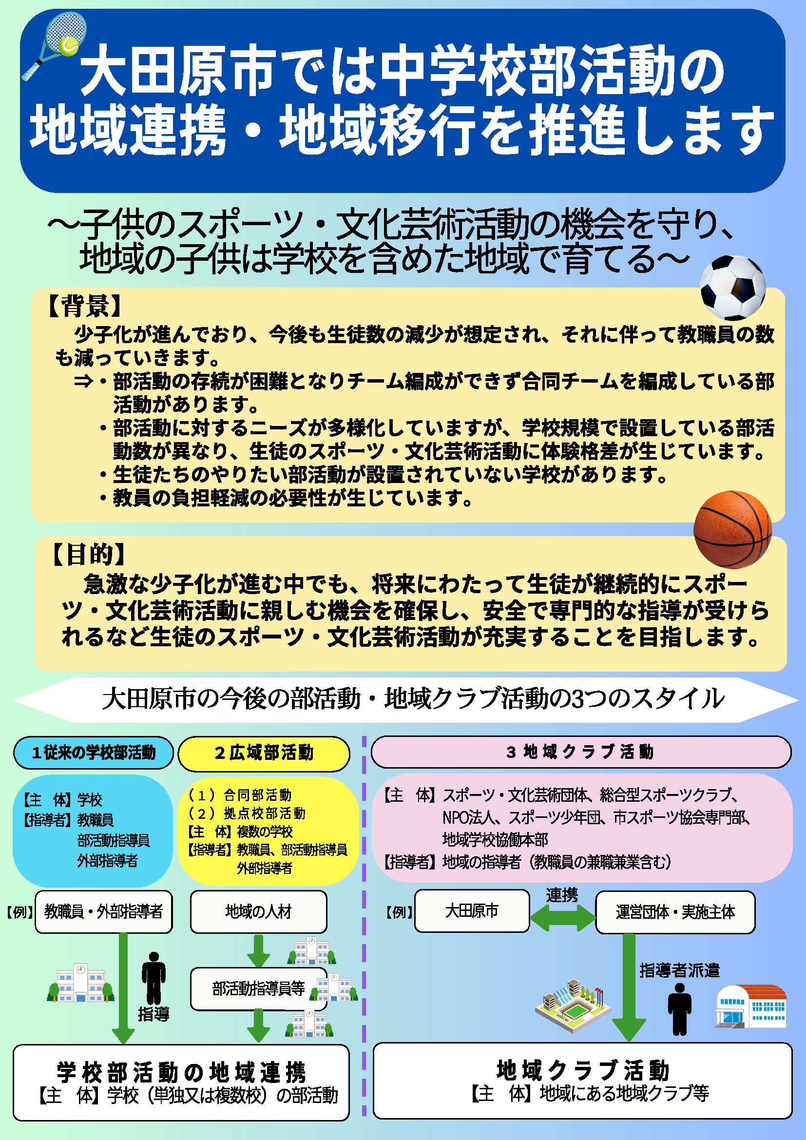 - 「大田原市学校部活動及び新たな地域クラブ活動の在り方等に関する方針[PDF:617KB] 」