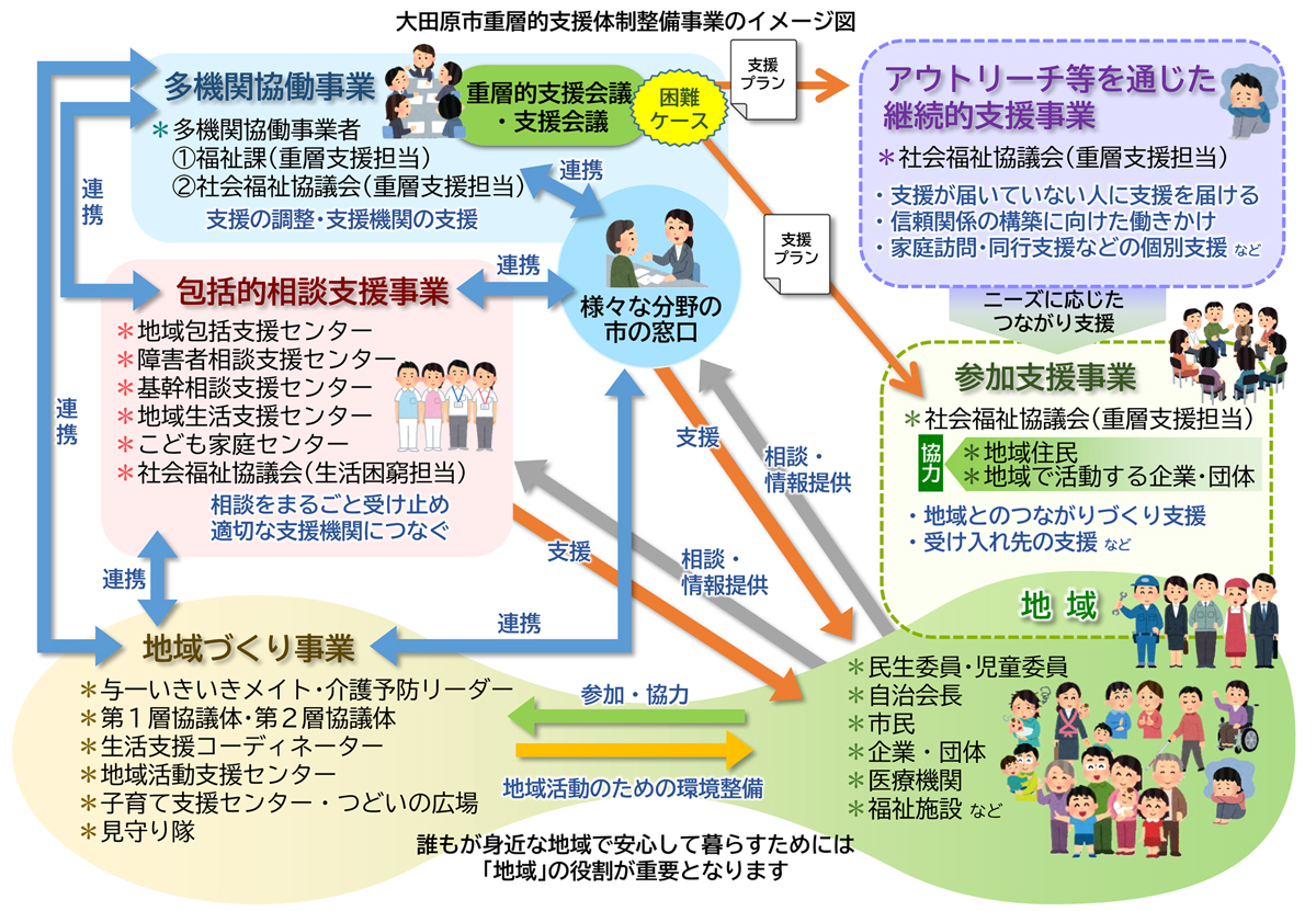 事業を適切かつ効果的に実施するため、社会福祉法第106条の5第1項の規定に基づき、以下のとおり大田原市重層的支援体制整備事業実施計画を策定しました。