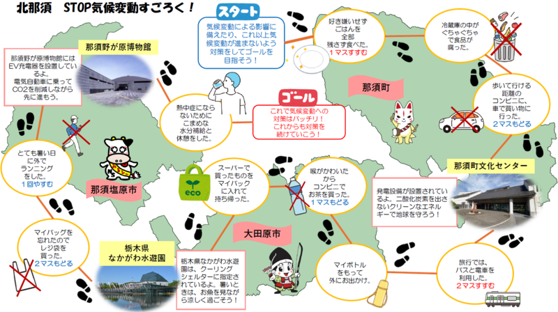 那須塩原市、大田原市、那須町が連携して、すごろくを作成しました。